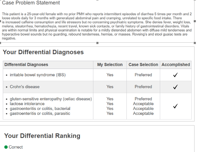 - No history of fever, weight loss, melena, steatorrhea, hematochezia, recent travel, sick contacts, or family history of gastrointestinal conditions
