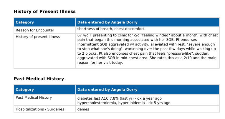 - 67 y/o female presenting to clinic with c/o “feeling winded” about a month